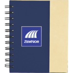 The 5.5" x 6" Lock-it Mini Spiral Notebook is a spiral notebook with a magnetic closure and 70 ruled pages. It also includes 25 sheets of 3” x 3” sticky memo pads in four colors, as well as a recycled cardboard ballpoint pen. A pen imprint is not available.